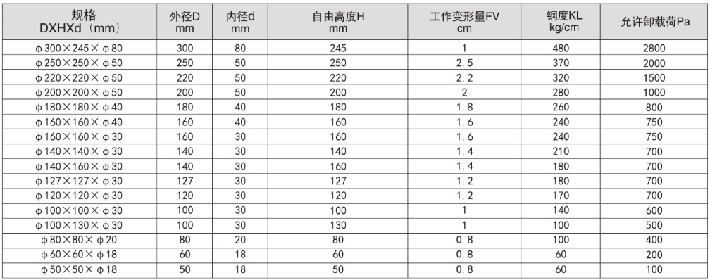 ? ? 橡膠彈簧形狀不受限制,有較大的彈性變形,容易實(shí)現(xiàn)非線性要求,減振隔音效果良好。